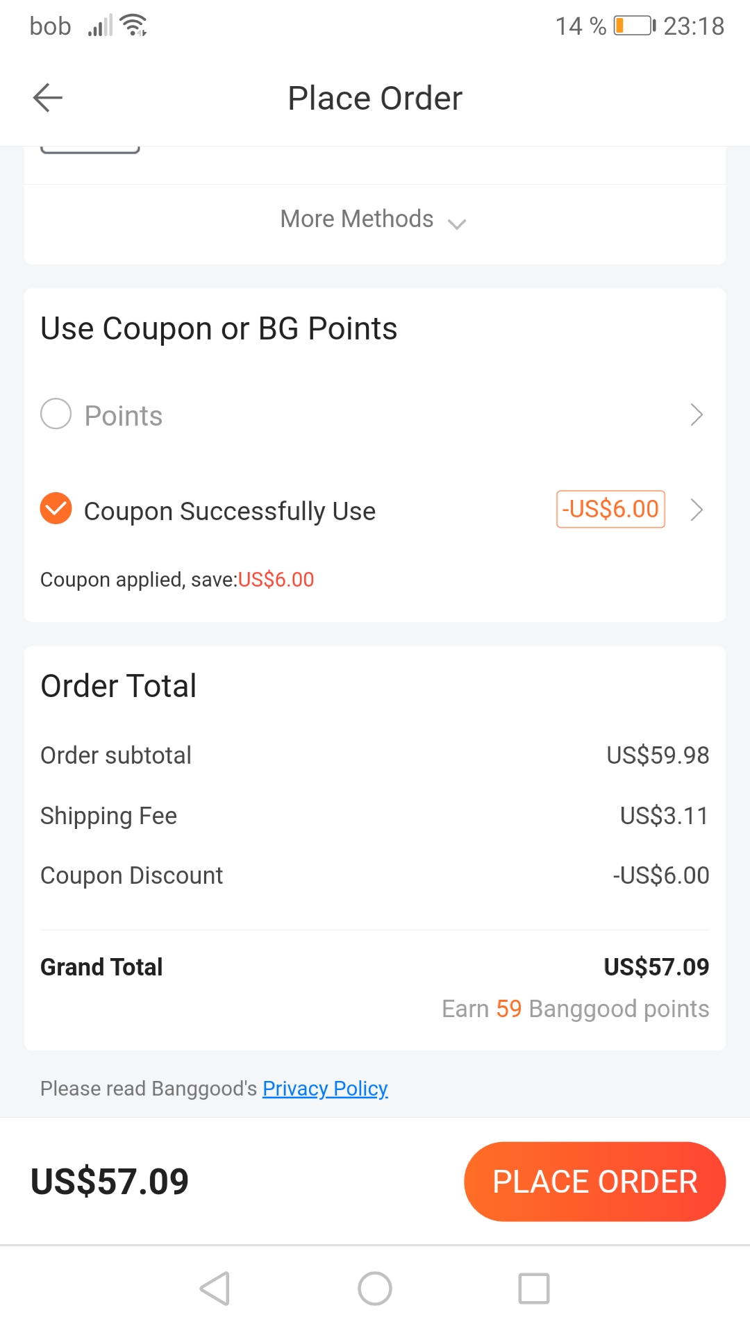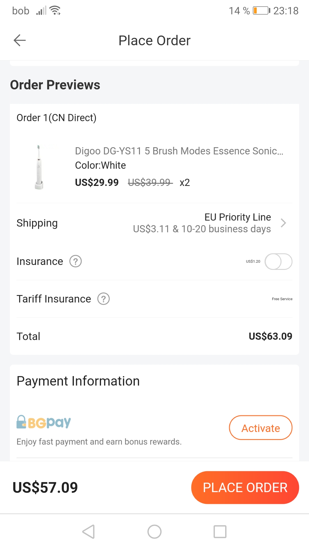 Sem poskusil, pa sem v prvem primeru ob pravi ceni pomotoma vtipkal napacen mail...v drugo preko drugega tel je ze cena 57$ kljub bonu odstetemu