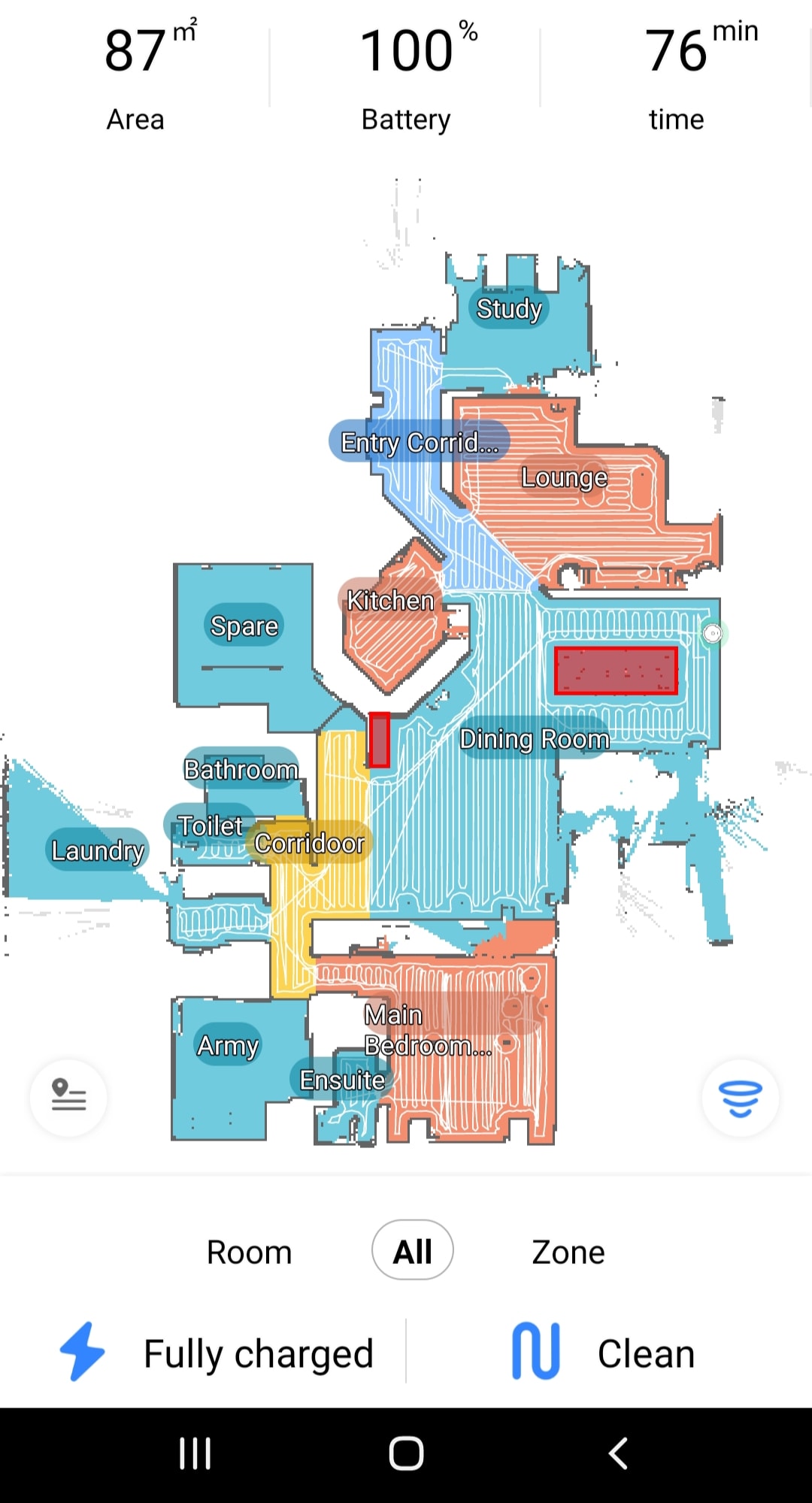 Sam izberem način čiščenja čisto od situacije. Če je čas osebno vedno naprej sesanje in potem ločeno mokro čiščenje. Sploh pri tem Y paternu mokrega čiščenja opažam, da če se tla umazana se zaradi odmika iz poti lahko smeti malo raznašajo po tleh, kar je pri novem firmware sicer odstranjeno, kar se mi zdi škoda, mogoče bo v naslednji verziji spet dodano, bomo videli. Meni je skratka super opcija suho čiščenje in nato ločeno mokro v Y paternu, res top sčisti. Kombinirano redko uporabljam, če se mudi ponavadi zaženem le suho čiščenje. Ampak vsak ima svoj način ... Sicer pa pri malo bolj umazanih prsotorih (hodnik, vstop v hišo) prostore malo razdelim, da vmes krpico umijem, v teh prostorih vedno izberem tudi dvojno čiščenje.