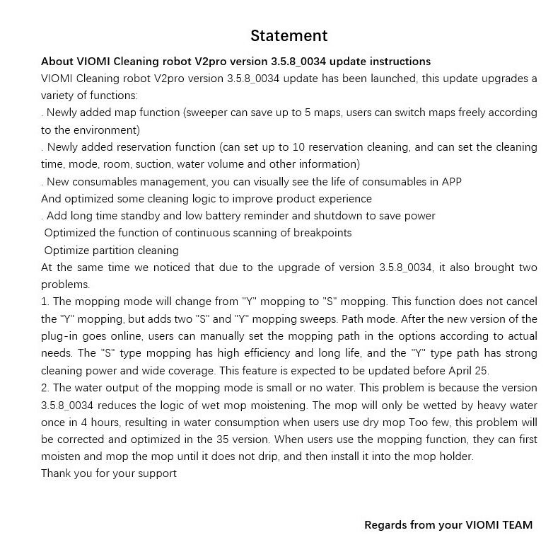 VIOMI will update the firmware version within 10-15 days to version 3.5.3 0034.
